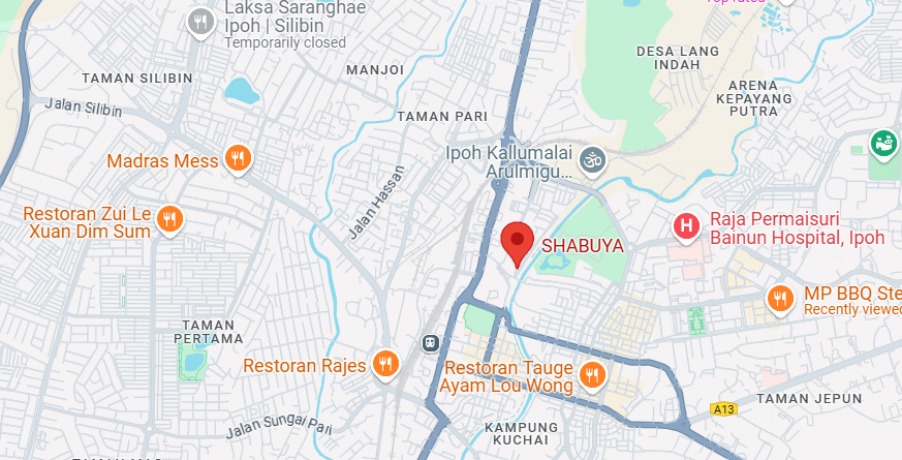 Address: Shabuya, Kinta Riverfront Hotel & Suites, Jalan Lim Bo Seng, Taman Istana, 30000 Ipoh, Perak