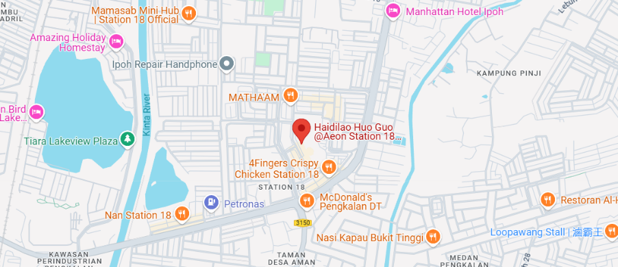 Address: Lot F66, F67, F70&F71, AEON IPOH STATION 18 SHOPPING CENTRE, 22, Susuran Stesen 18, Station 18, 31650 Ipoh, Perak