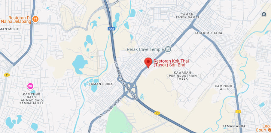 Address: Pusat Perdagangan, 148 & 150, Jalan Tasek Timur, Taman Tasek Indra, 31400 Ipoh, Perak