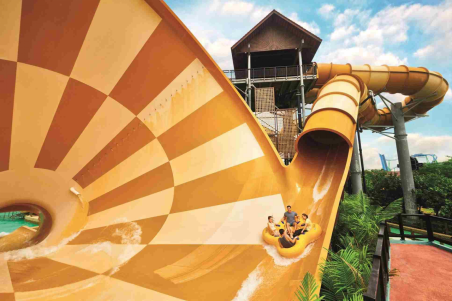 Never miss out the Adventure Water Park Desaru Coast’s iconic water slide – The Tempest! With twists and turns on loops and corkscrews, this popular amusement park ride combines high-energy funnels with a slide drop.