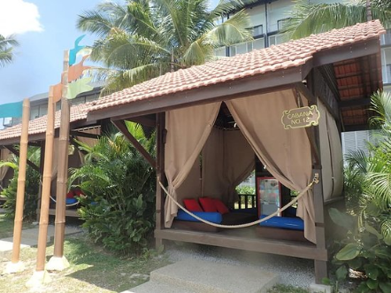 Here, visitors can enjoy the beautiful beach view and water park from their private Beachside Cabana. Also, features with a mini sofa, ceiling fan, safety box, and a fridge. This economy cabana looks like an open air motel, which is absolutely money-worthing. More amazingly, a complimentary combo meal is included in the affordable rental!