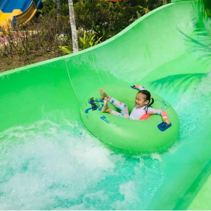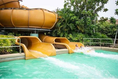 In addition, it is also the longest and tallest water slide in Desaru Water Park. Plus of course, it is sure a sight to behold from the top! Moreover, it has a funnel that purposely design for a thrilling spin at high speed. On the other hand, the steep 24-foot water slide offers a thrilling freefall experience on a breathless ride.