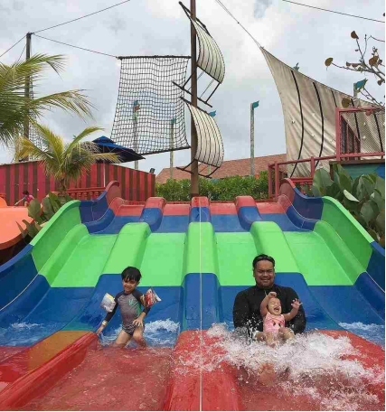 In addition, there are water spray that attach alongside this thrilling slide to level up the ride excitement! So what are you waiting for, grab your inflated tubes and get ready for the ultimate ride with your partner!