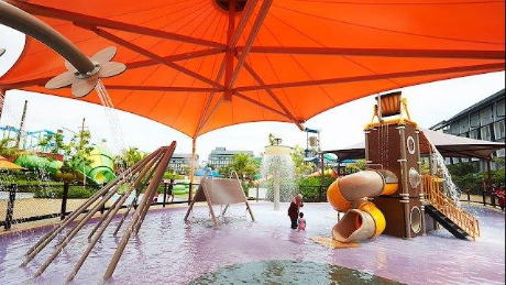Besides, the bold-color curve slide nearby might be calm and gentle. However, it not just slides the little ones at whirlwind speed, but also splashes them with cool water.