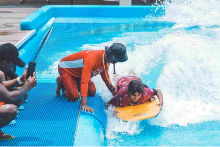 In addition, the water park provides professional instructors upon pre-booking to teach beginners surfing. Throughout the learning process, beginners can practice balancing on a surfing board and correcting the surfing skill. Besides, they even allow adjusting of wave strength to suit different surfing skill levels.